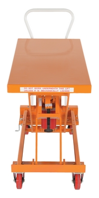 The self-elevating lift cart has an automatic height adjustment that provides ergonomic work positioning to increase productivity and decrease work related repetitive motion injuries. The unit has one (1) spring with a heavy-duty steel construction and a bolt-on handle and rolls smoothly on poly-on-poly casters, two (2) rigid and two (2) swivel with brake standard.
