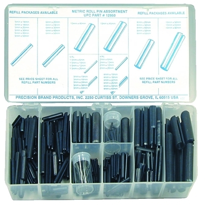 | 605-12925 | 4 Lengths Included for Each Size: 1/16 in; 5/64 in; 3/32 in; 1/8 in; 5/32 in; 3/16 in; 7/32 in; 1/4 in; 5/16 in; 3/8 in; Plastic Box | Spring Steel | 300 per set | 2.4 lb |