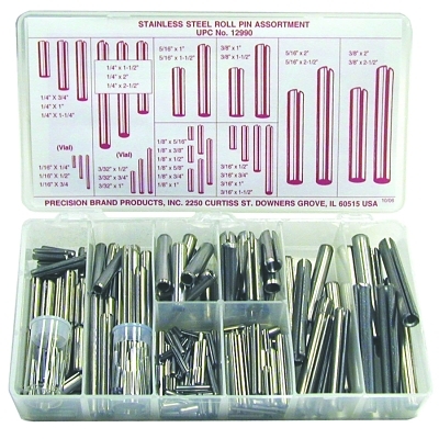 | 605-12990 | Plastic Box; Various Lengths Included for Each Diameter: 1/16 in; 3/32 in; 1/8 in; 3/16 in; 1/4 in; 5/16 in; 3/8 in | Stainless Steel | 300 per set | 1 lb |