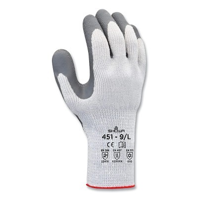 | 845-451L-09 | Latex | White; Gray | White; Red | Elasticated Wrist | Latex coating | Seamless Knit |