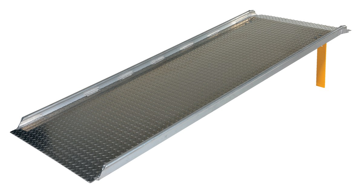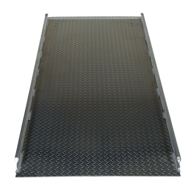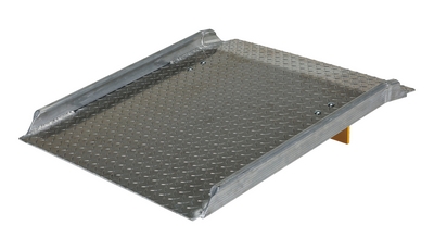 The Aluminum Hand Truck dock boards are lightweight and can be carried and positioned by one person. Provides a safe and convenient bridge between dock and truck. Welded aluminum diamond tread surface and beveled edges provide safe and smooth entry and exit. The bend is designed to keep ramp edges flush with the dock surface and the truck floor. The unit is equipped with bolt-on locking legs and full length aluminum curbs that provide hand holds and reduce chance of roll off. Designed for use with two wheel hand trucks.