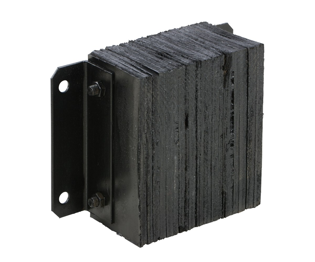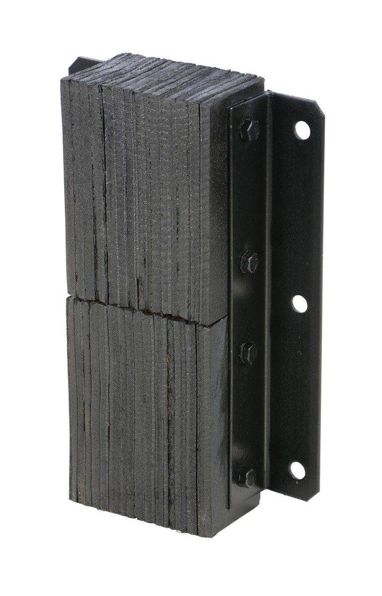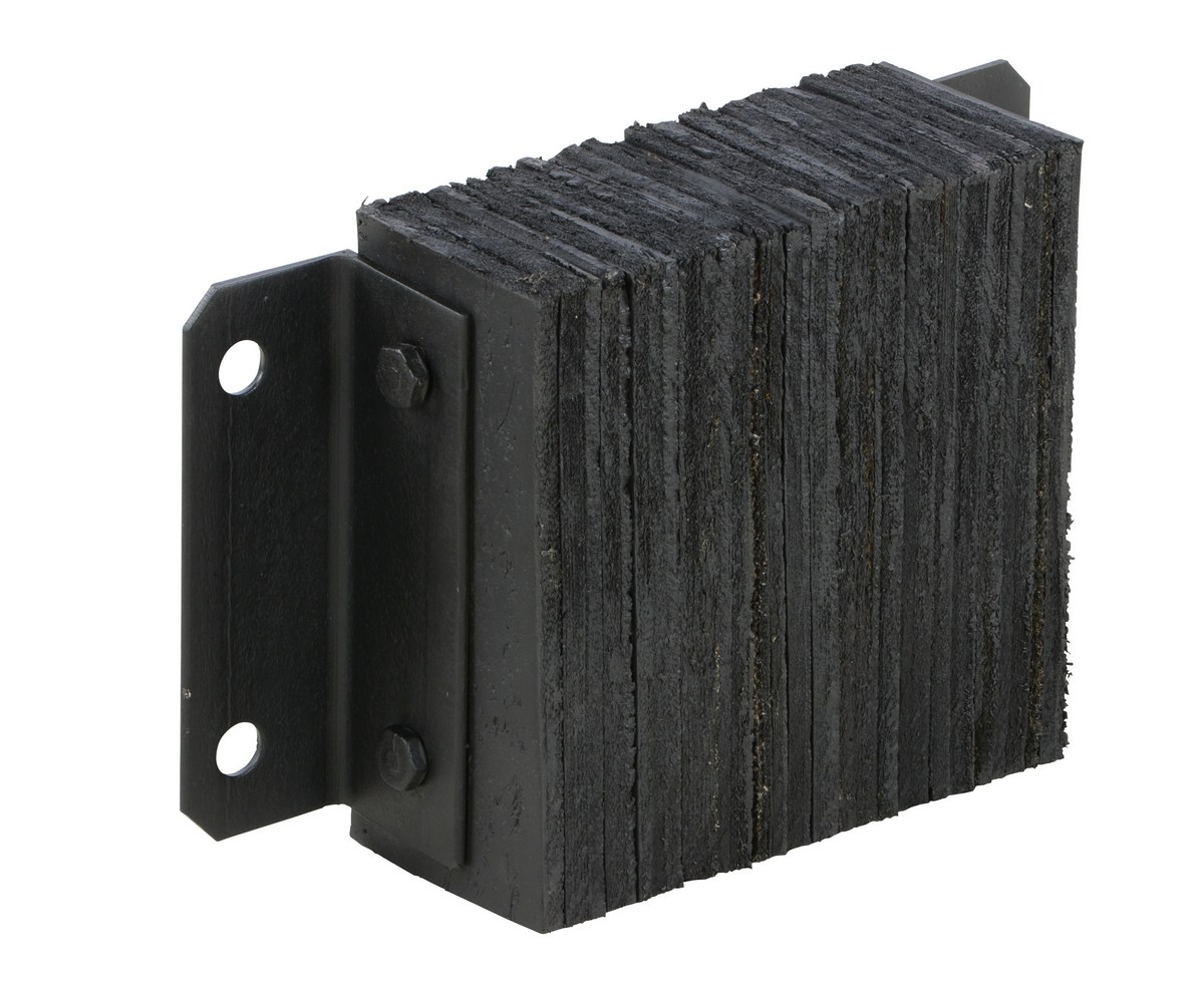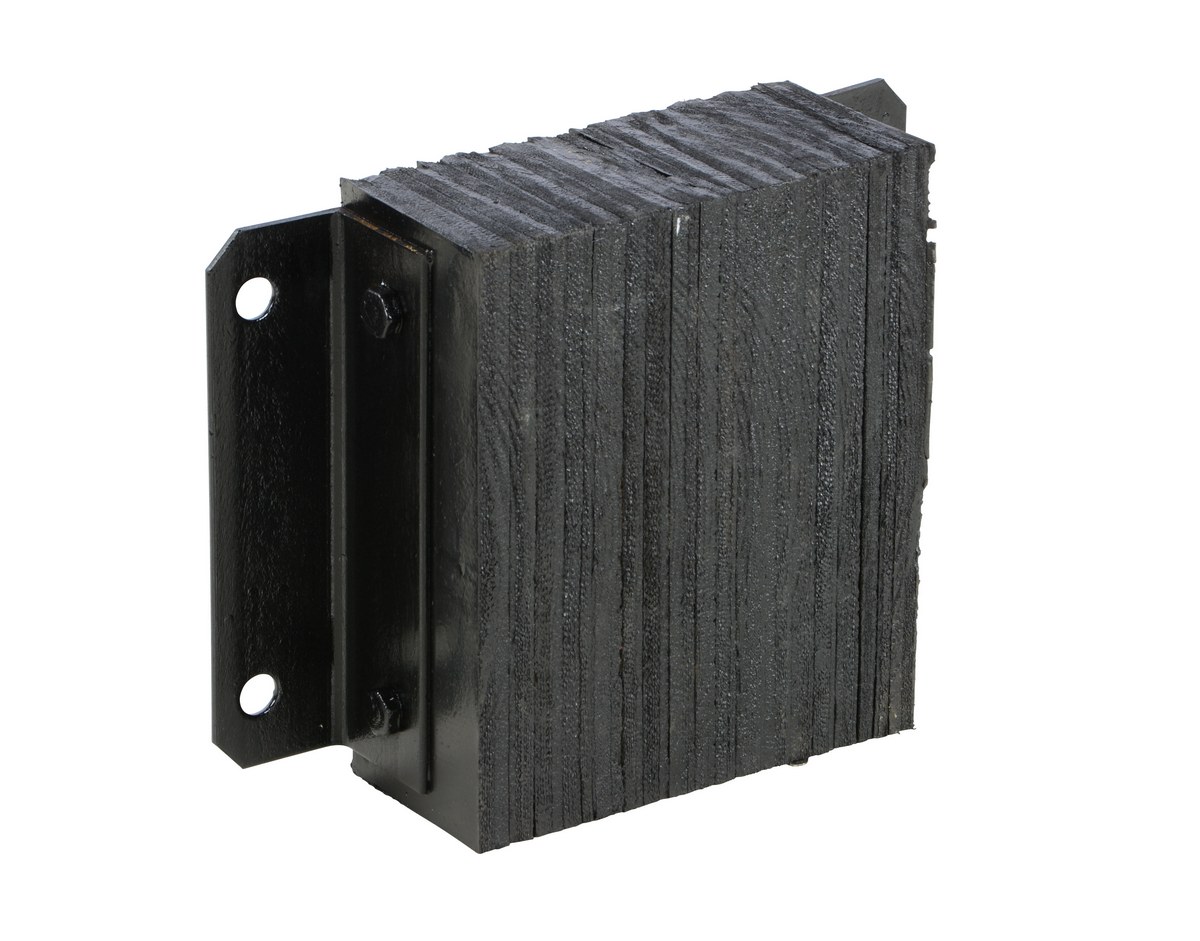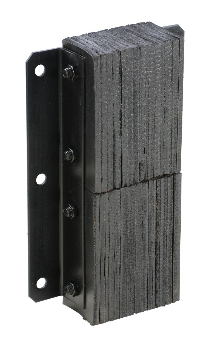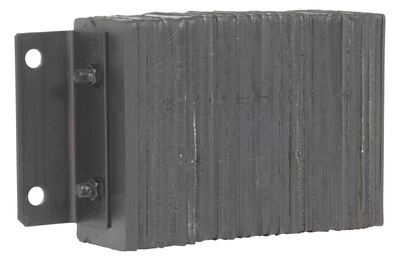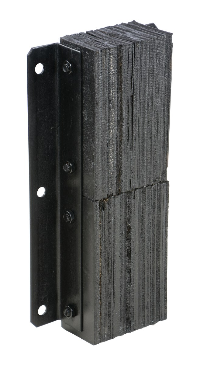 The laminated Dock Bumper provides durable, economical protection for loading docks and trailers. This unit is constructed of fabric reinforced rubber from recycled truck tires. The pads are laminated between painted structural angles and held together with steel tie rods. The width is bolt hole center to bolt hole center. Installation hardware sold separately.