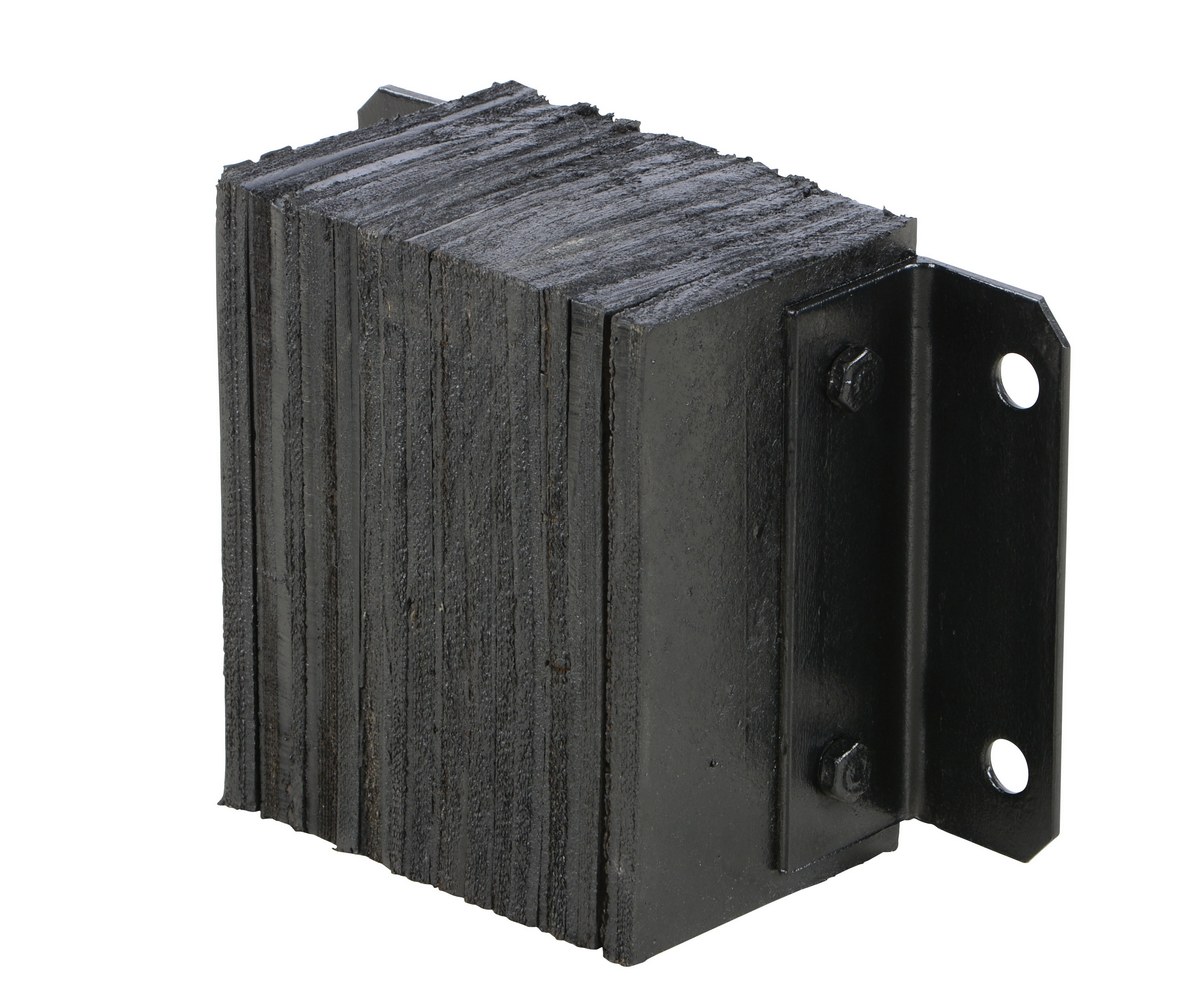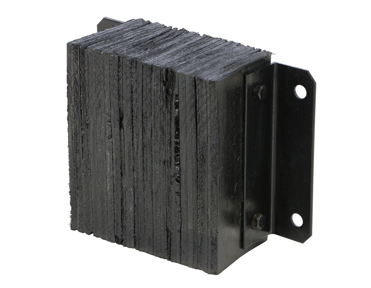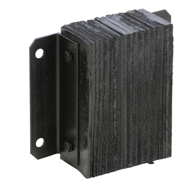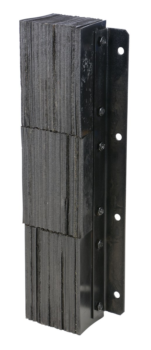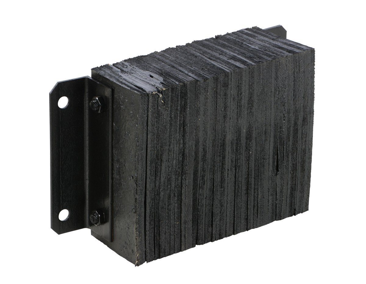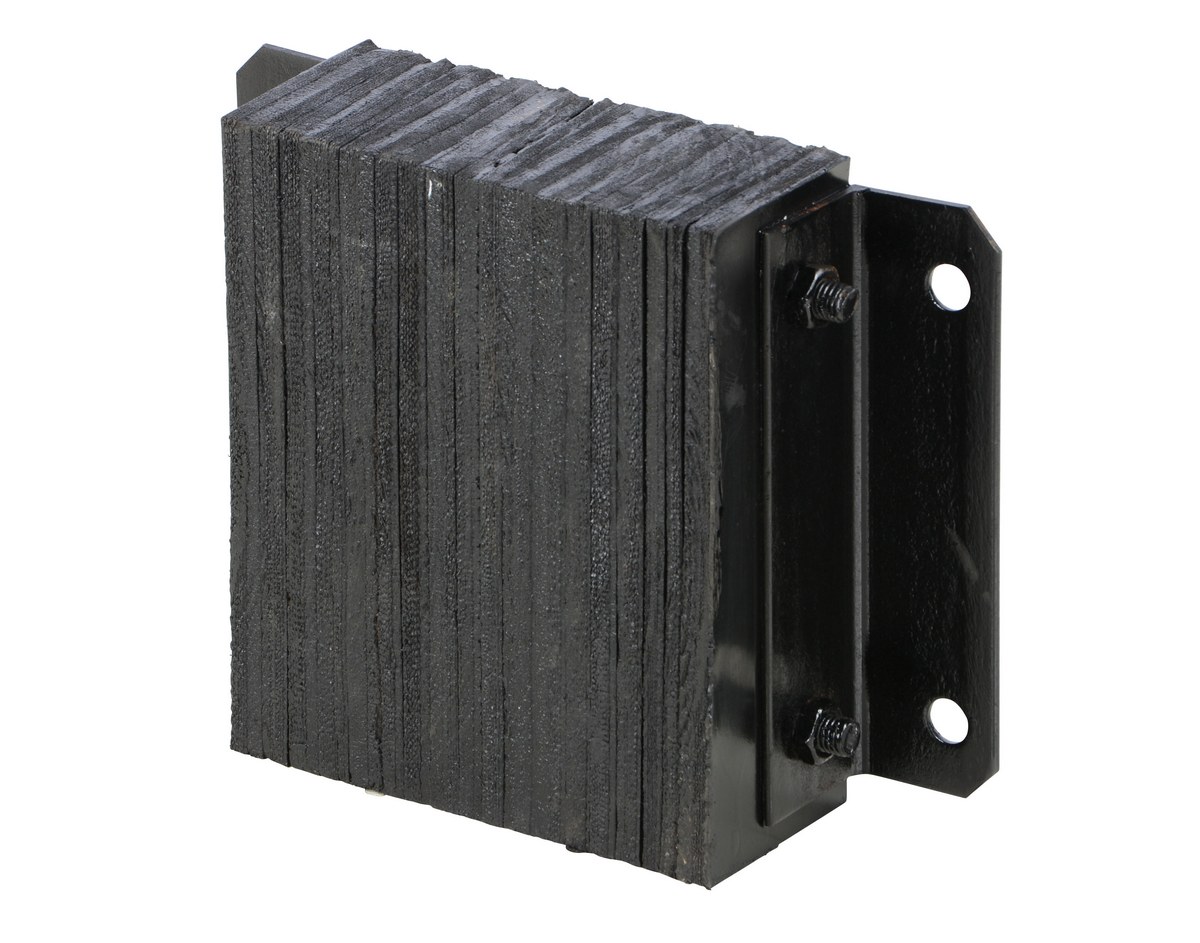 The laminated Dock Bumper provides durable, economical protection for loading docks and trailers. This unit is constructed of fabric reinforced rubber from recycled truck tires. The pads are laminated between painted structural angles and held together with steel tie rods. The width is bolt hole center to bolt hole center. Installation hardware sold separately.