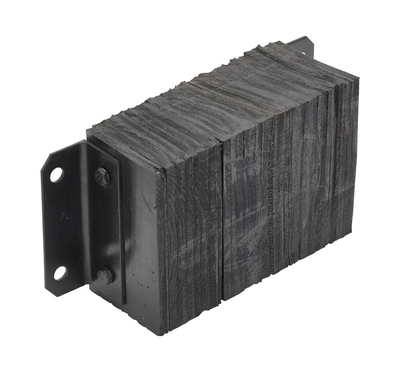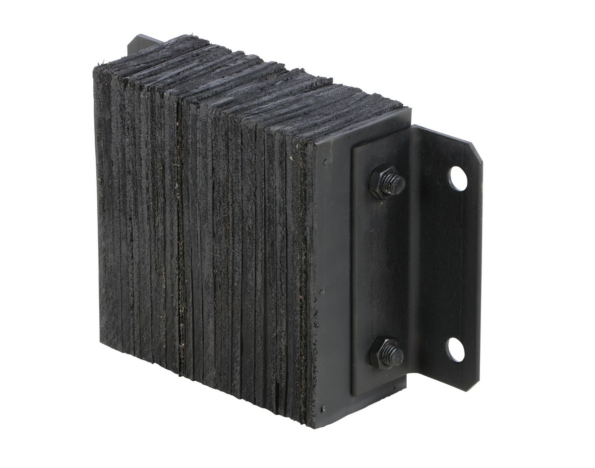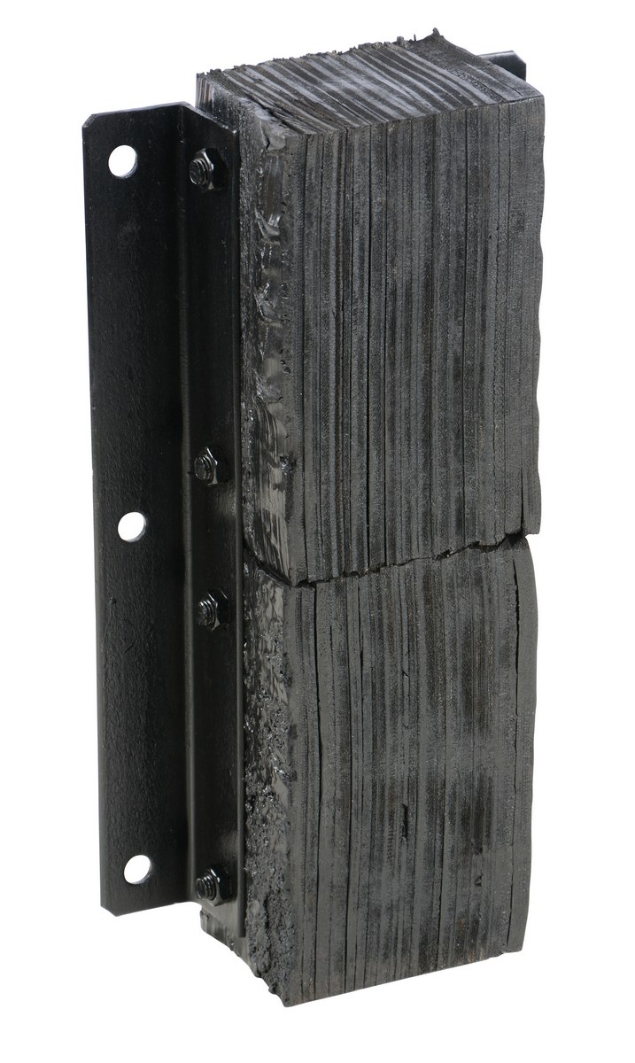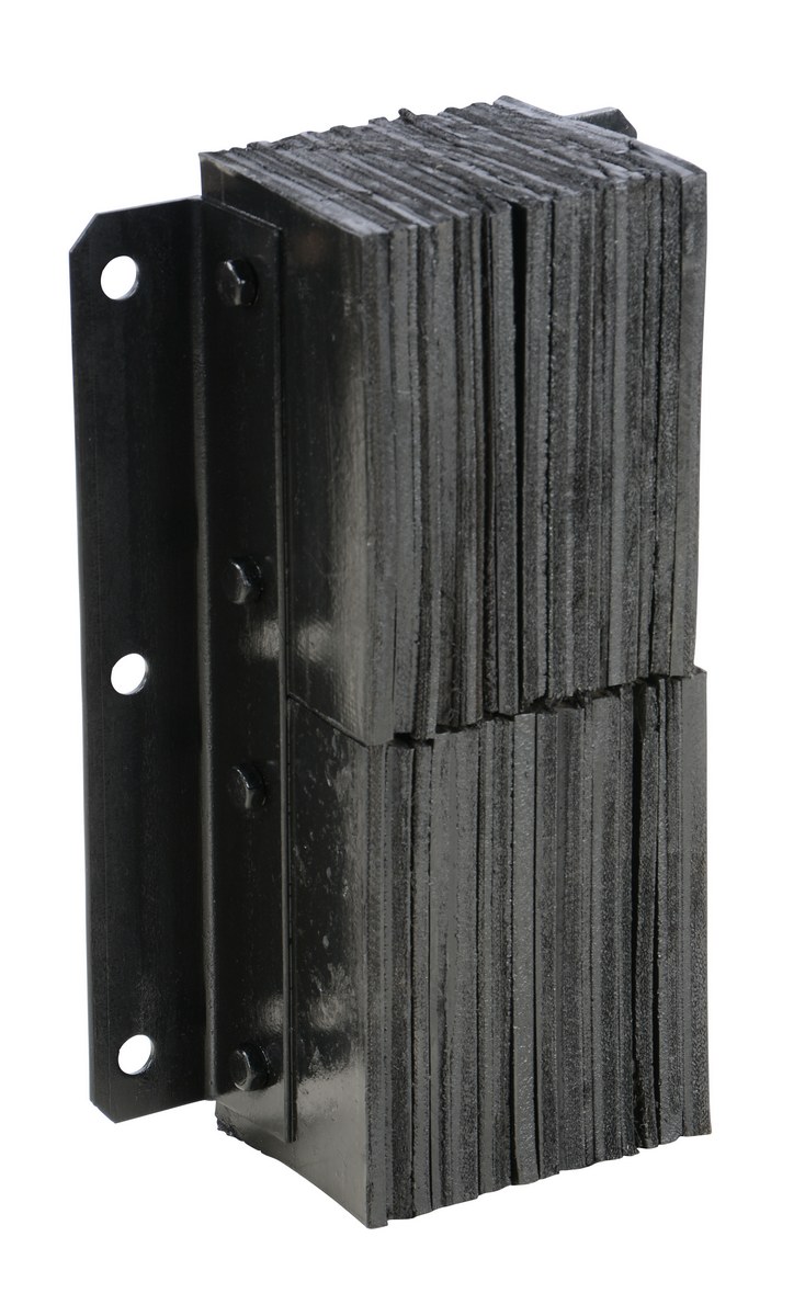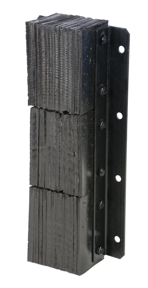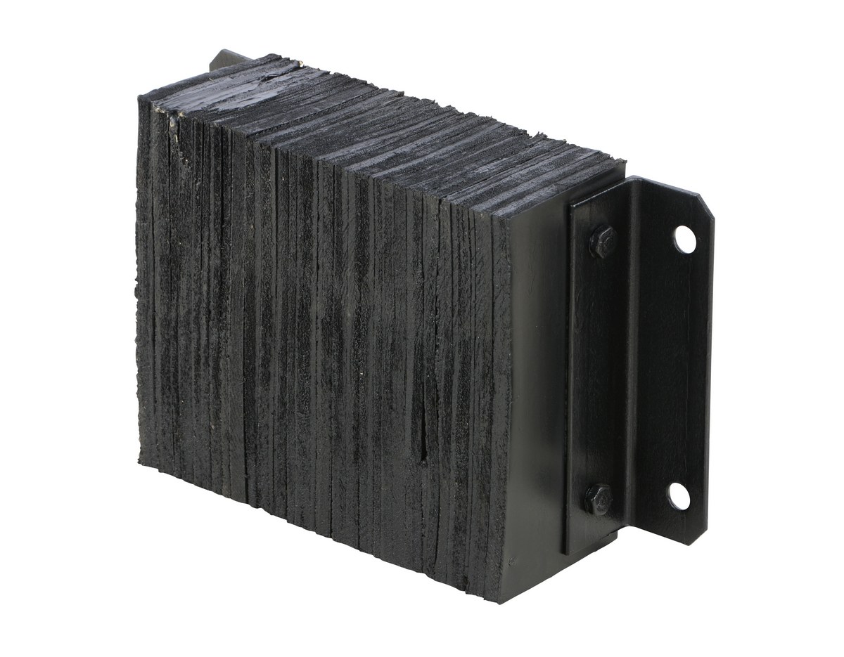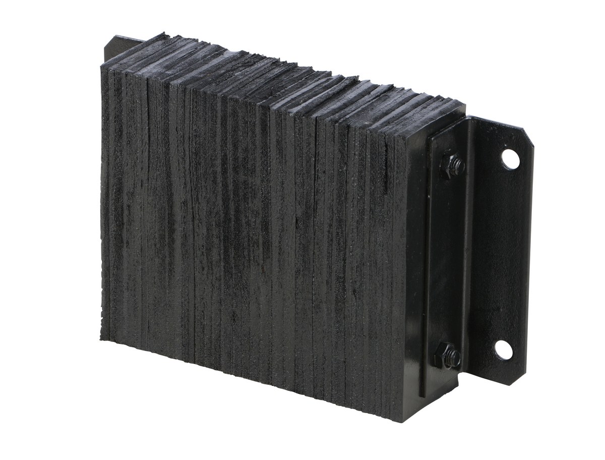 The laminated Dock Bumper provides durable, economical protection for loading docks and trailers. This unit is constructed of fabric reinforced rubber from recycled truck tires. The pads are laminated between painted structural angles and held together with steel tie rods. The width is bolt hole center to bolt hole center. Installation hardware sold separately.