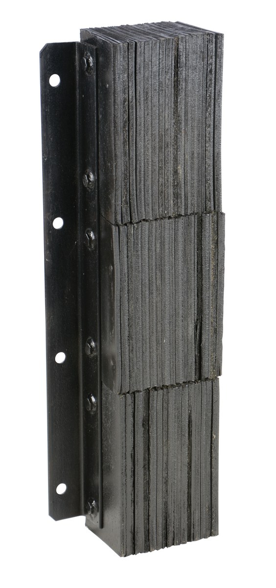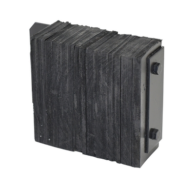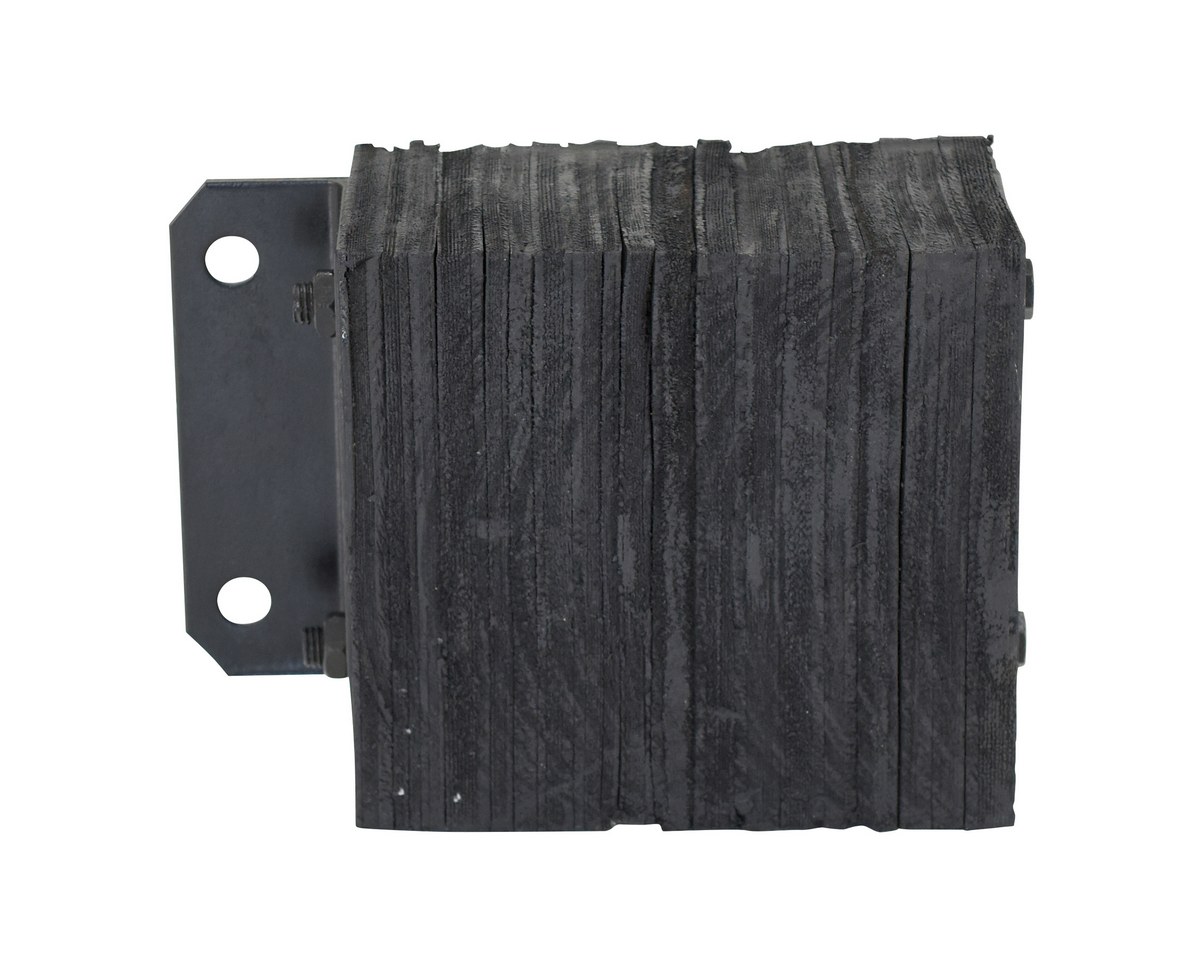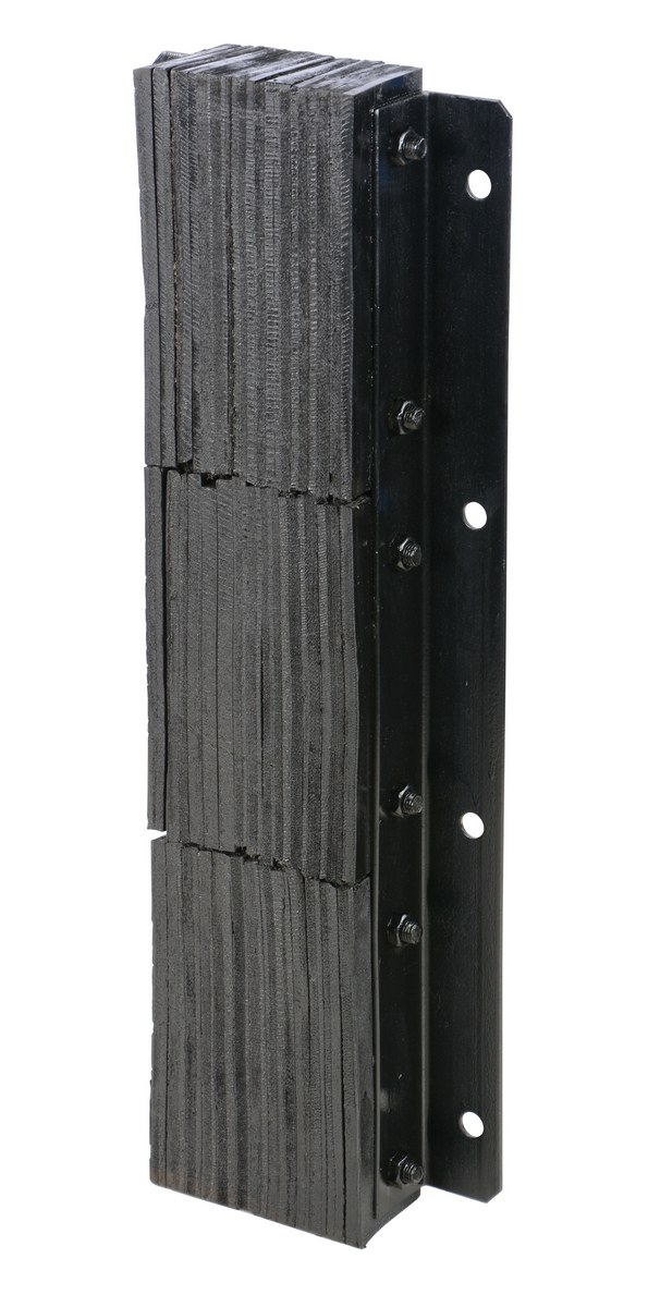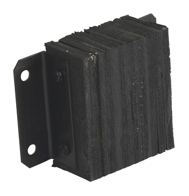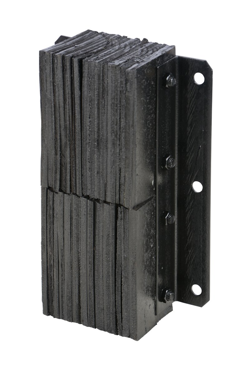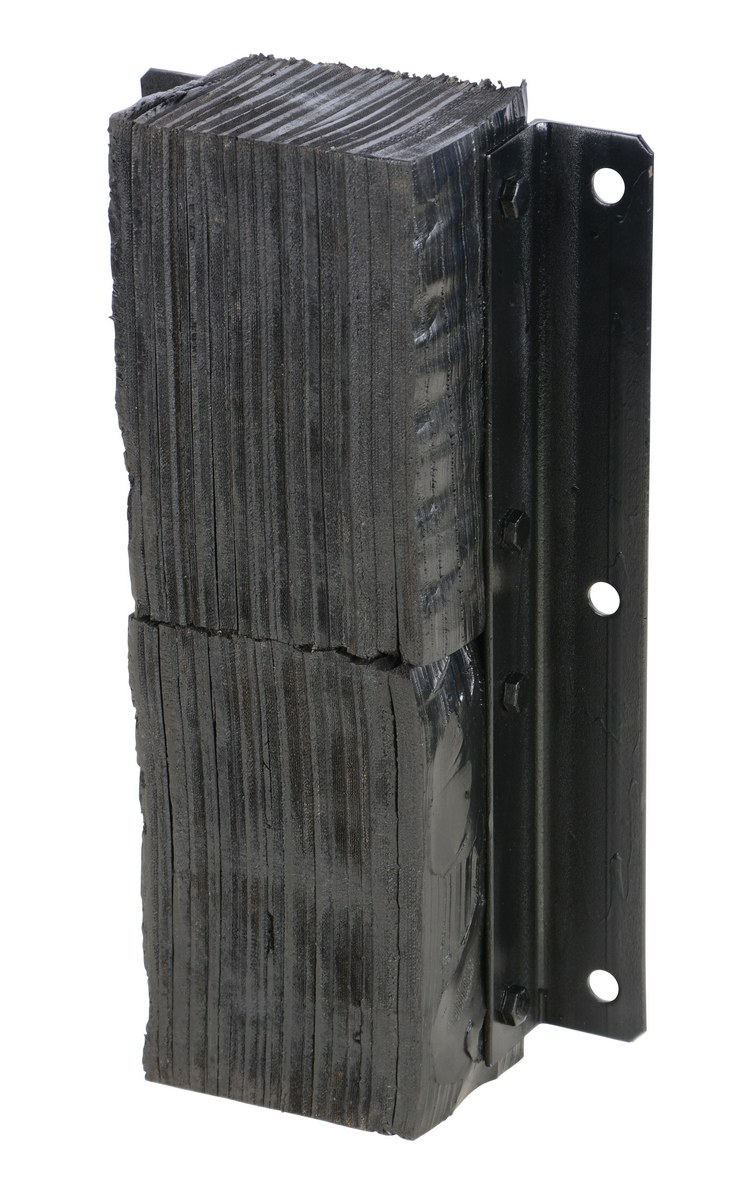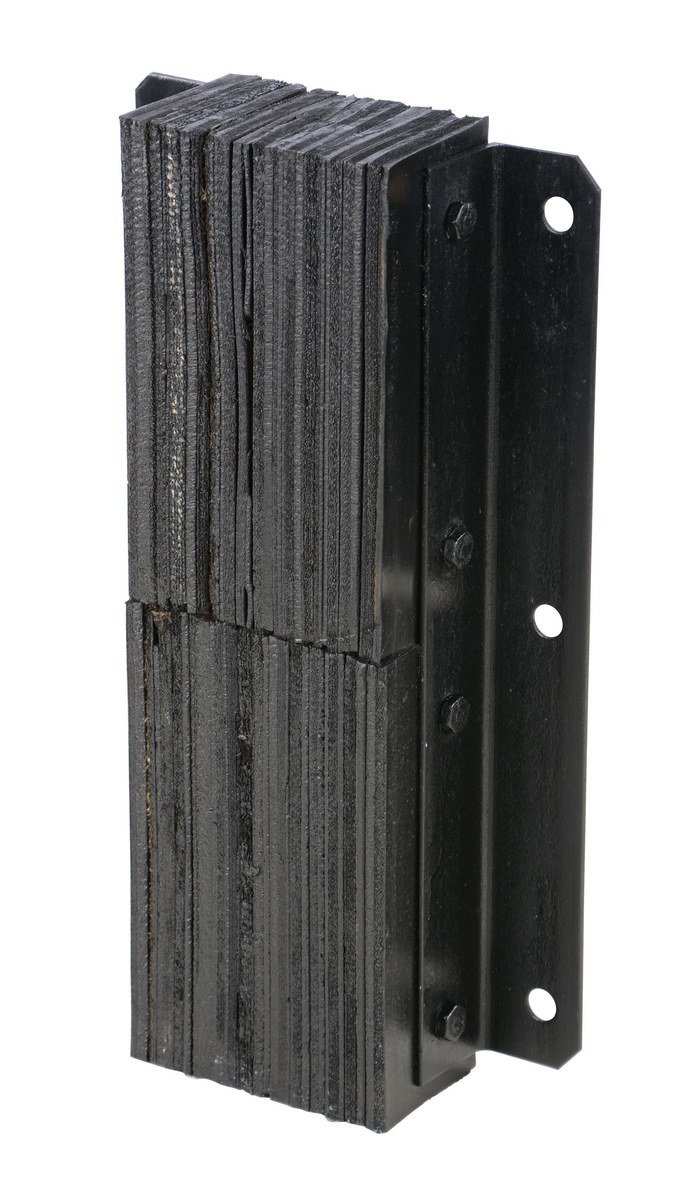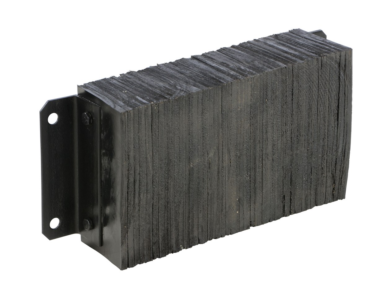 The laminated Dock Bumper provides durable, economical protection for loading docks and trailers. This unit is constructed of fabric reinforced rubber from recycled truck tires. The pads are laminated between painted structural angles and held together with steel tie rods. The width is bolt hole center to bolt hole center. Installation hardware sold separately.