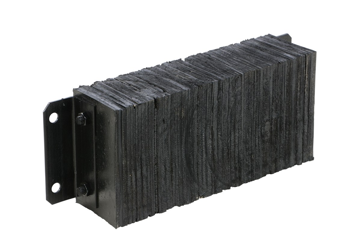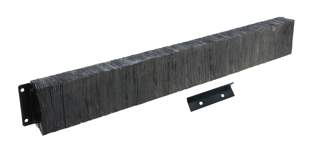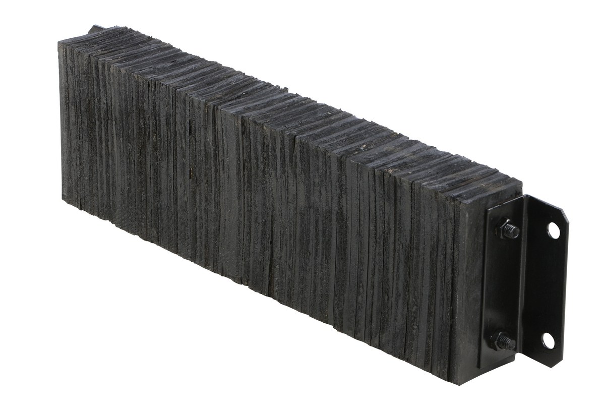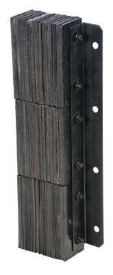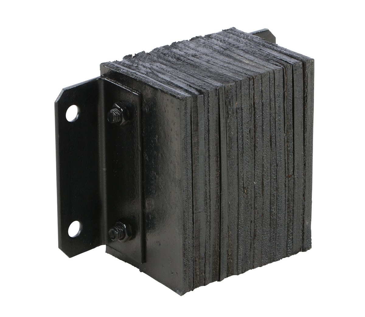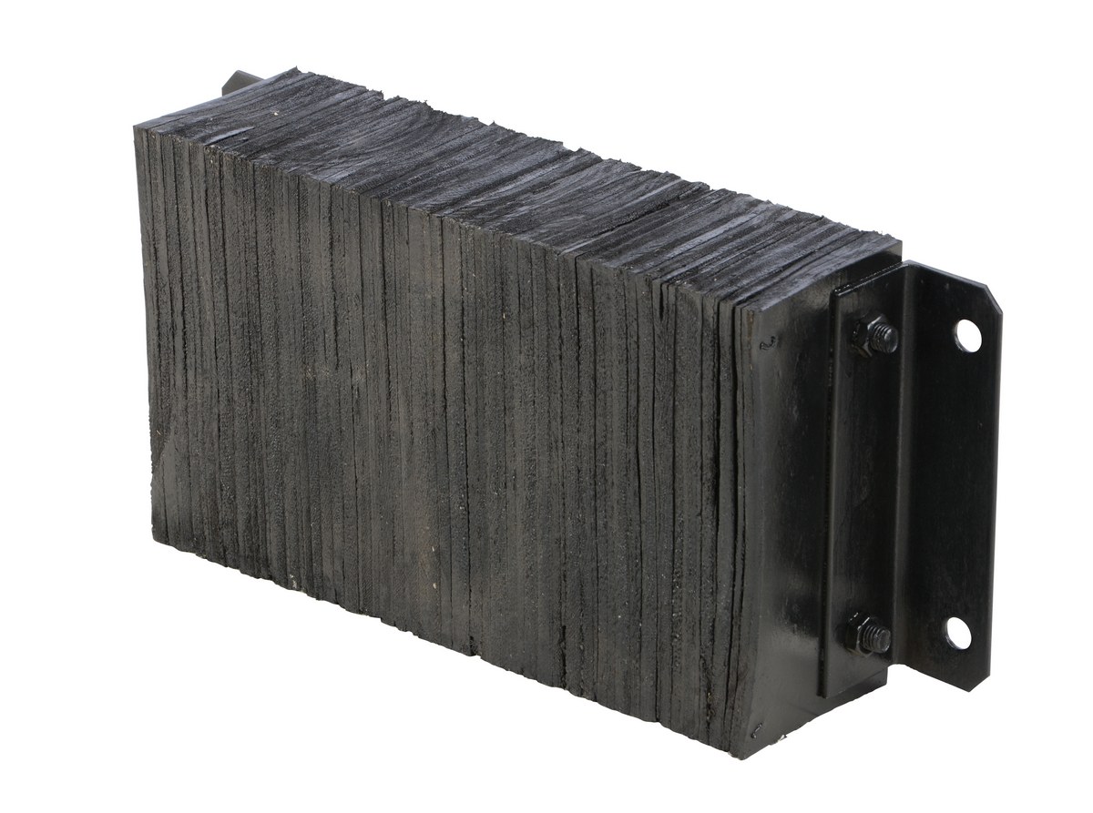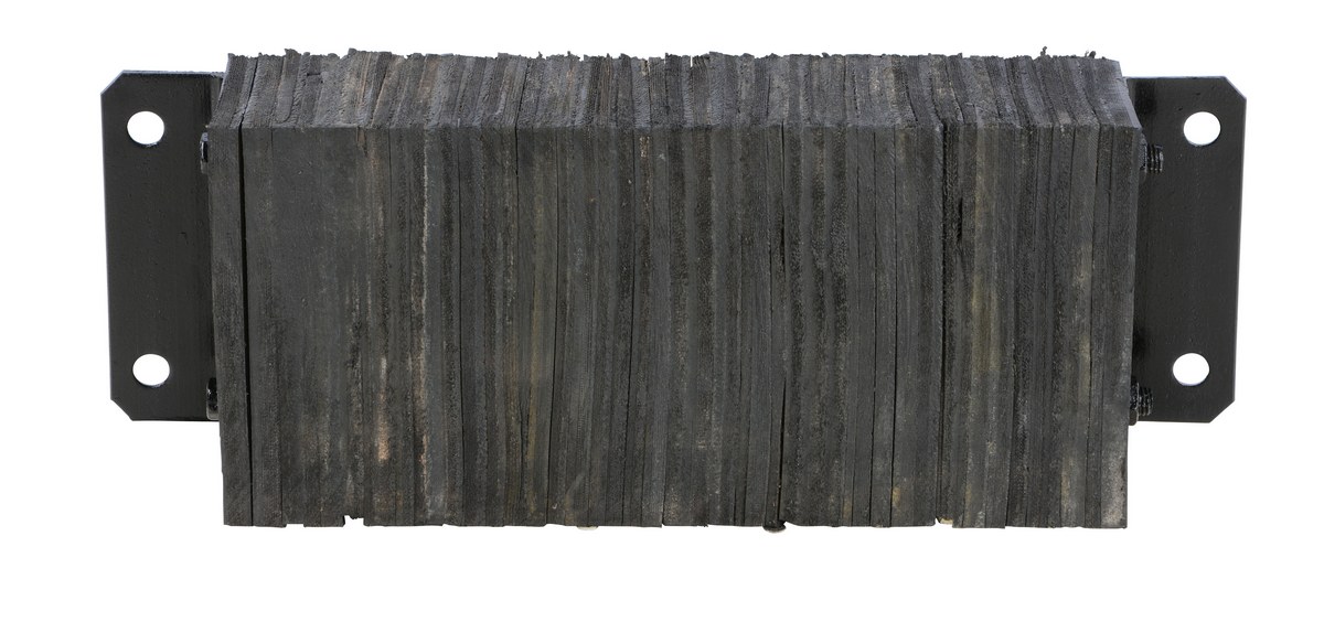 The laminated Dock Bumper provides durable, economical protection for loading docks and trailers. This unit is constructed of fabric reinforced rubber from recycled truck tires. The pads are laminated between painted structural angles and held together with steel tie rods. The width is bolt hole center to bolt hole center. Installation hardware sold separately.