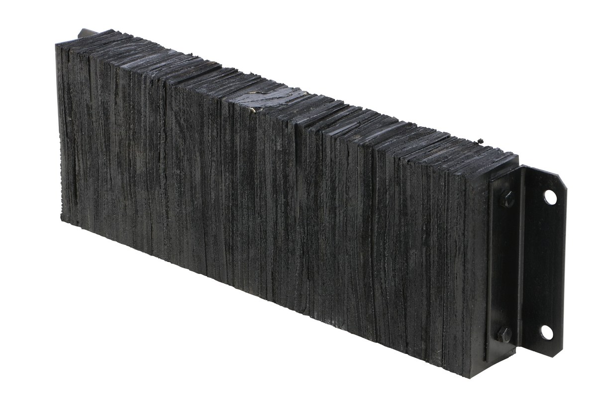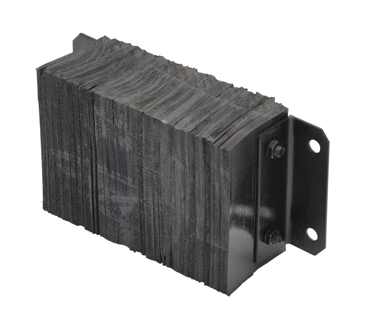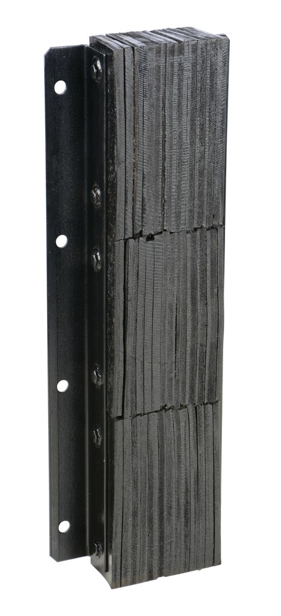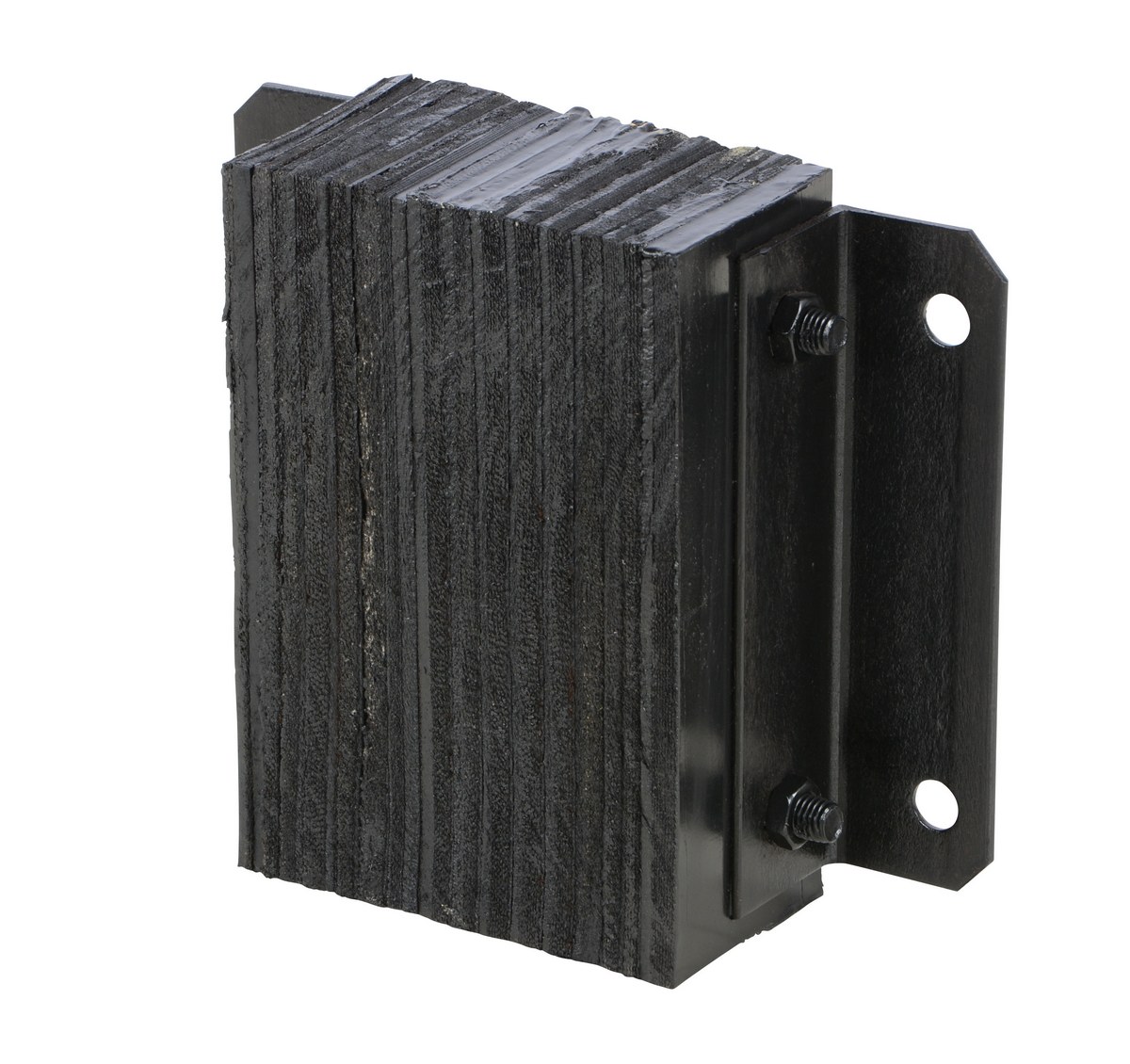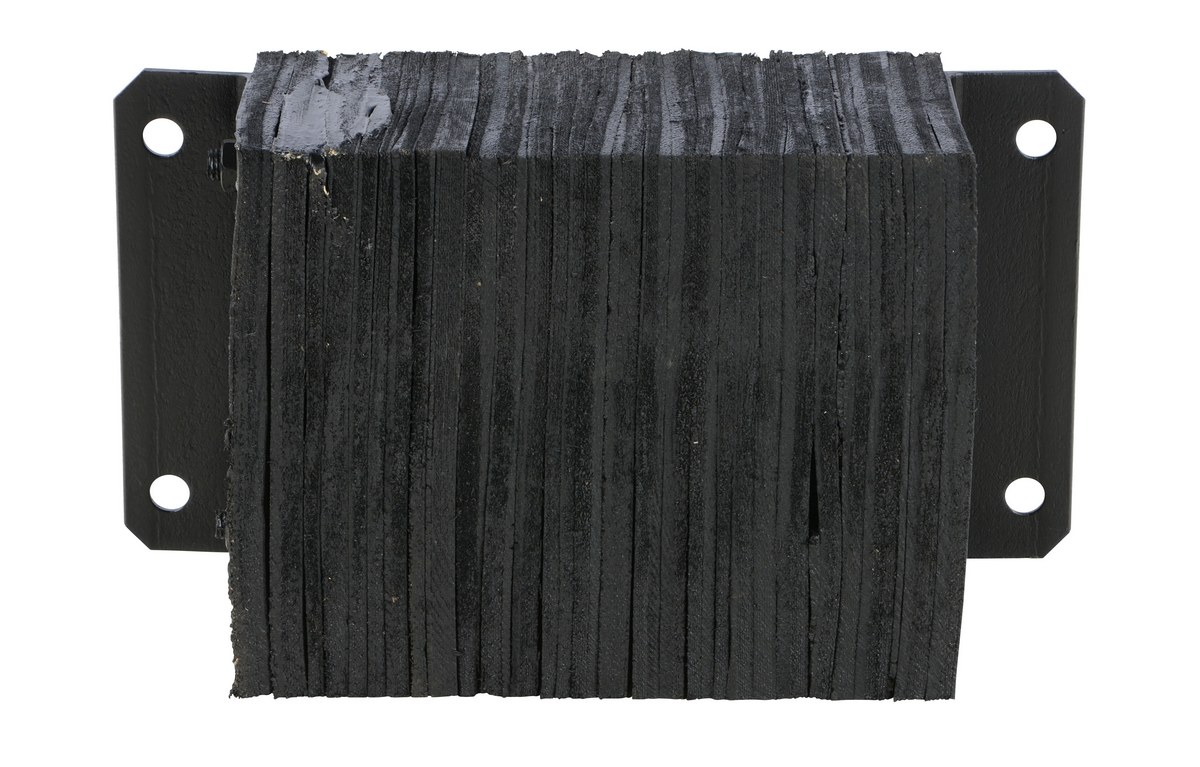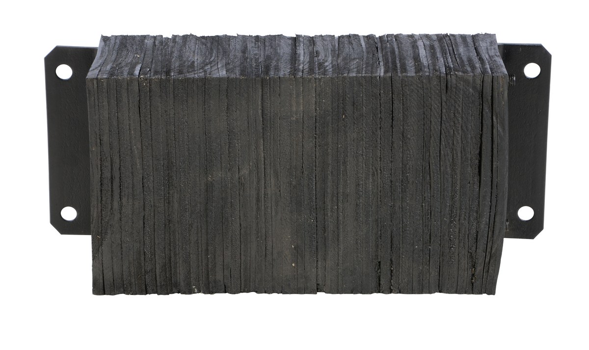 The laminated Dock Bumper provides durable, economical protection for loading docks and trailers. This unit is constructed of fabric reinforced rubber from recycled truck tires. The pads are laminated between painted structural angles and held together with steel tie rods. The width is bolt hole center to bolt hole center. Installation hardware sold separately.