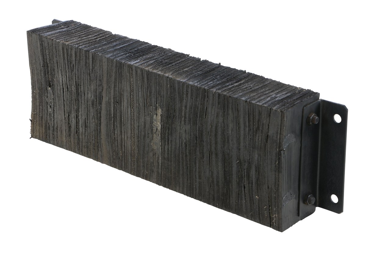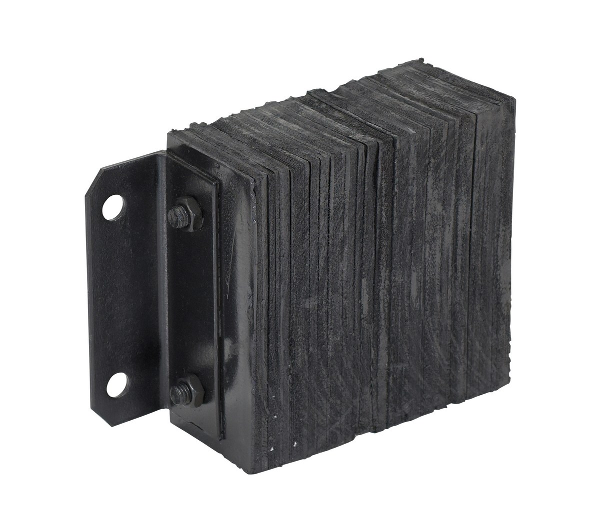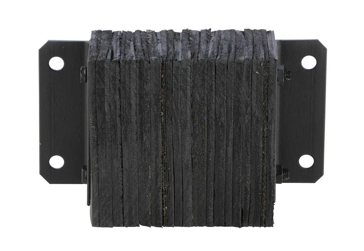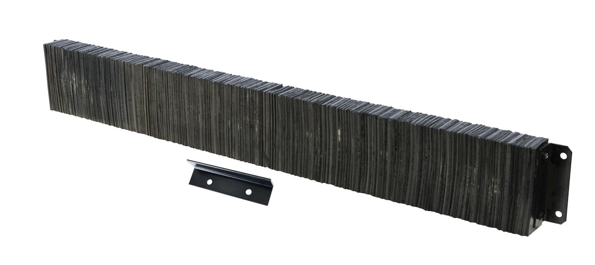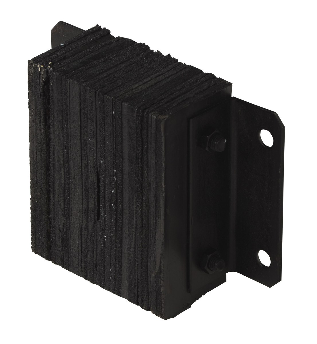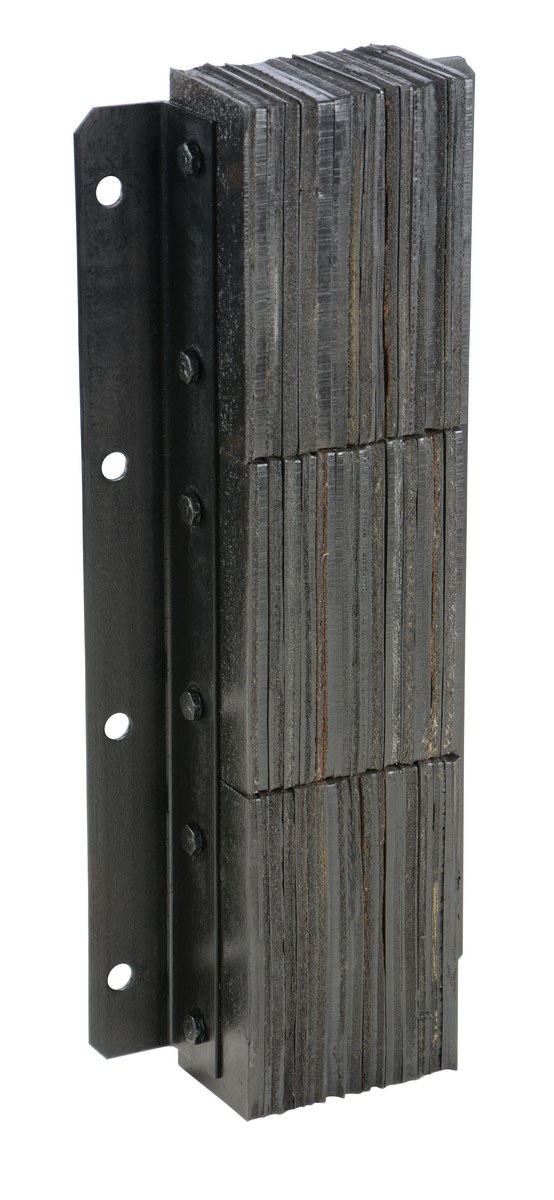 The laminated Dock Bumper provides durable, economical protection for loading docks and trailers. This unit is constructed of fabric reinforced rubber from recycled truck tires. The pads are laminated between painted structural angles and held together with steel tie rods. The width is bolt hole center to bolt hole center. Installation hardware sold separately.
