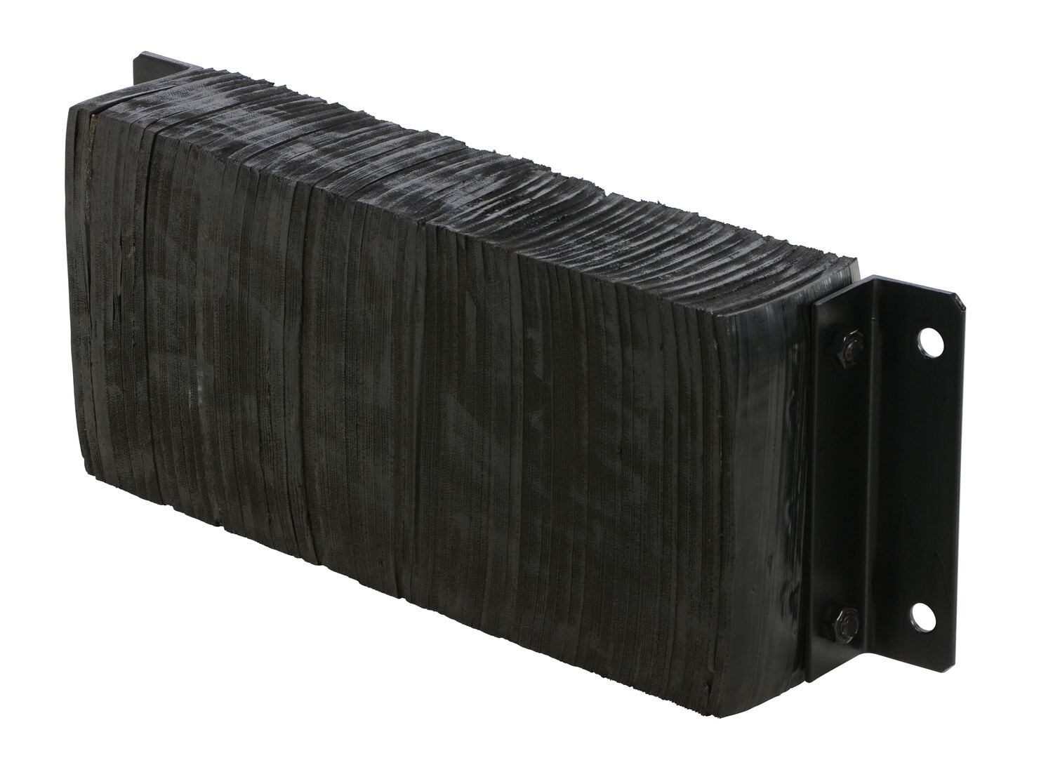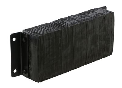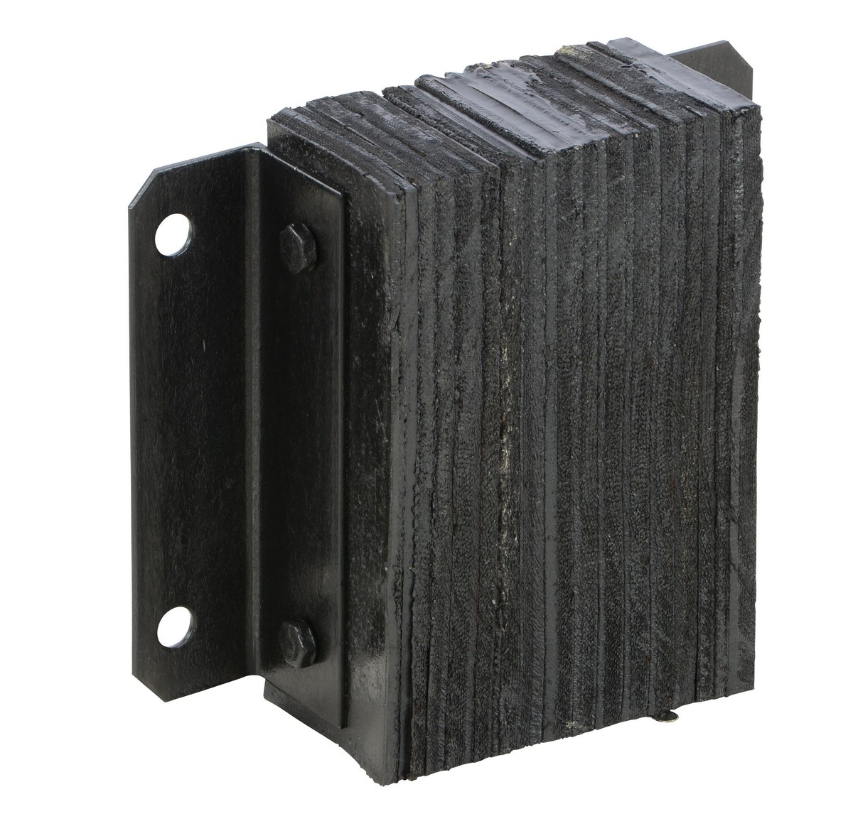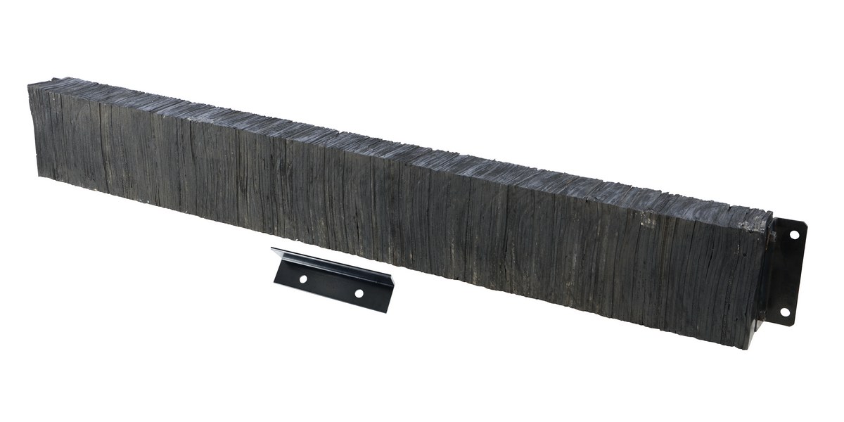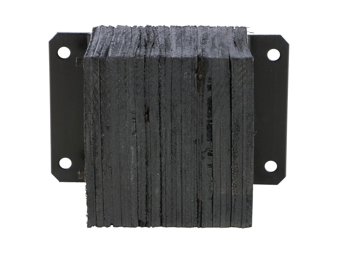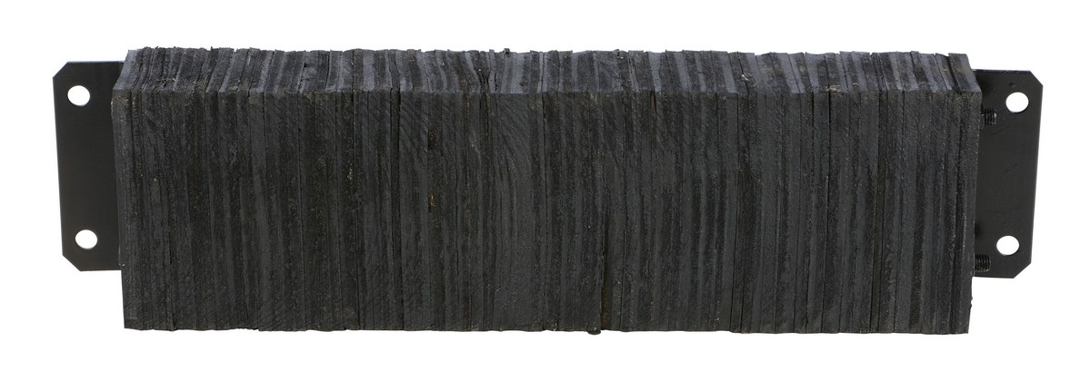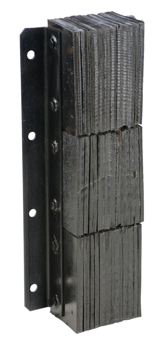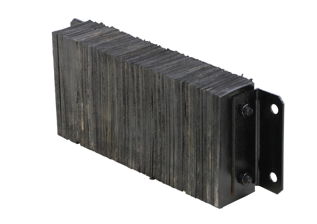 The laminated Dock Bumper provides durable, economical protection for loading docks and trailers. This unit is constructed of fabric reinforced rubber from recycled truck tires. The pads are laminated between painted structural angles and held together with steel tie rods. The width is bolt hole center to bolt hole center. Installation hardware sold separately.