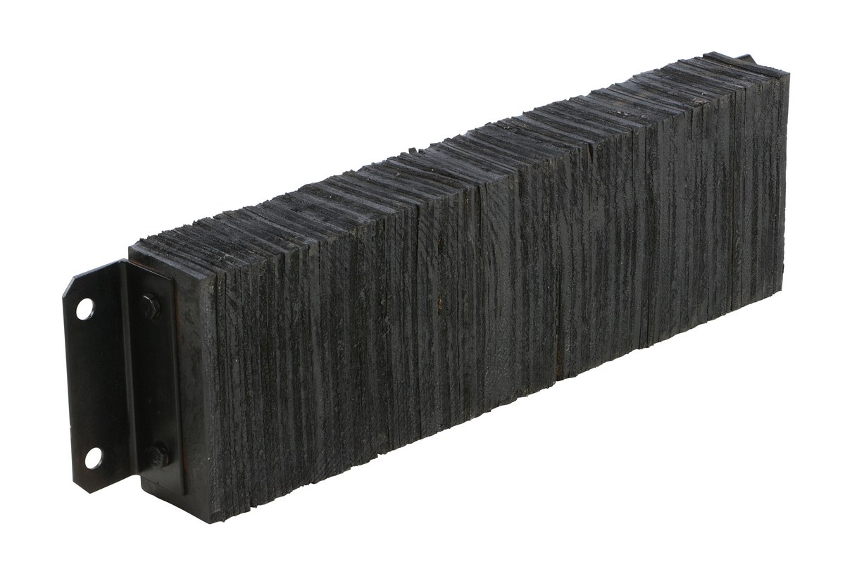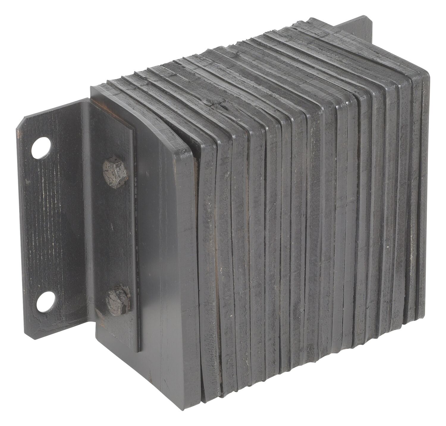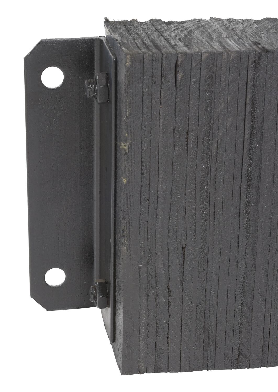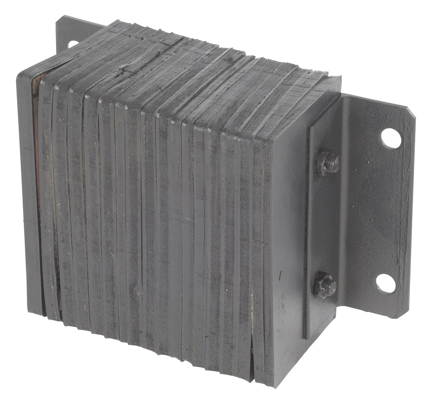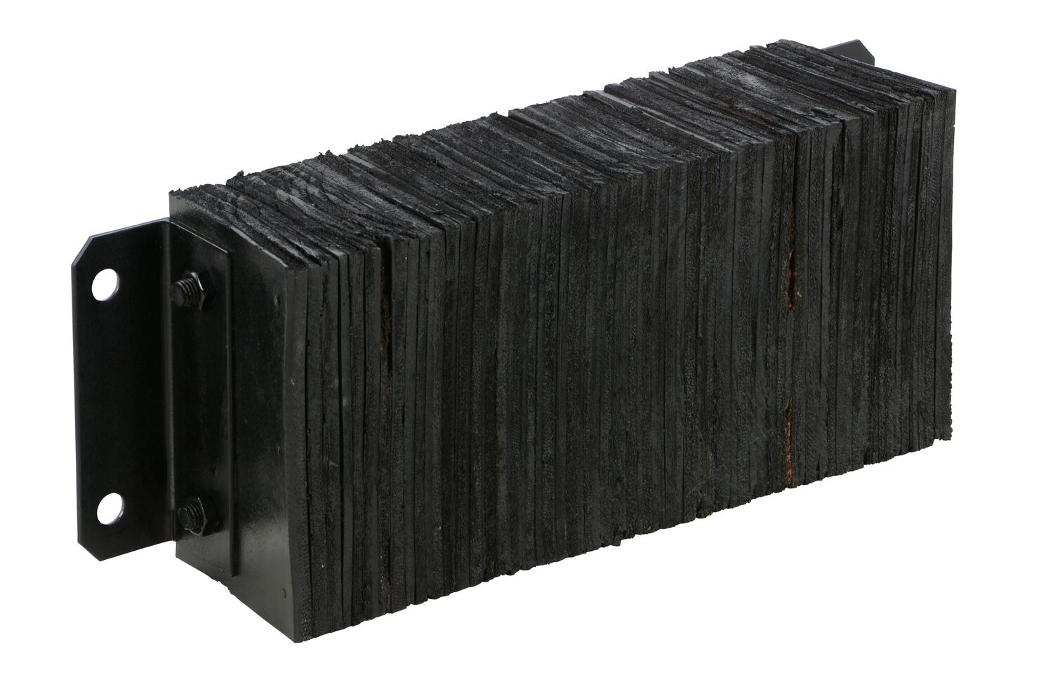 The laminated Dock Bumper provides durable, economical protection for loading docks and trailers. This unit is constructed of fabric reinforced rubber from recycled truck tires. The pads are laminated between painted structural angles and held together with steel tie rods. The width is bolt hole center to bolt hole center. Installation hardware sold separately.