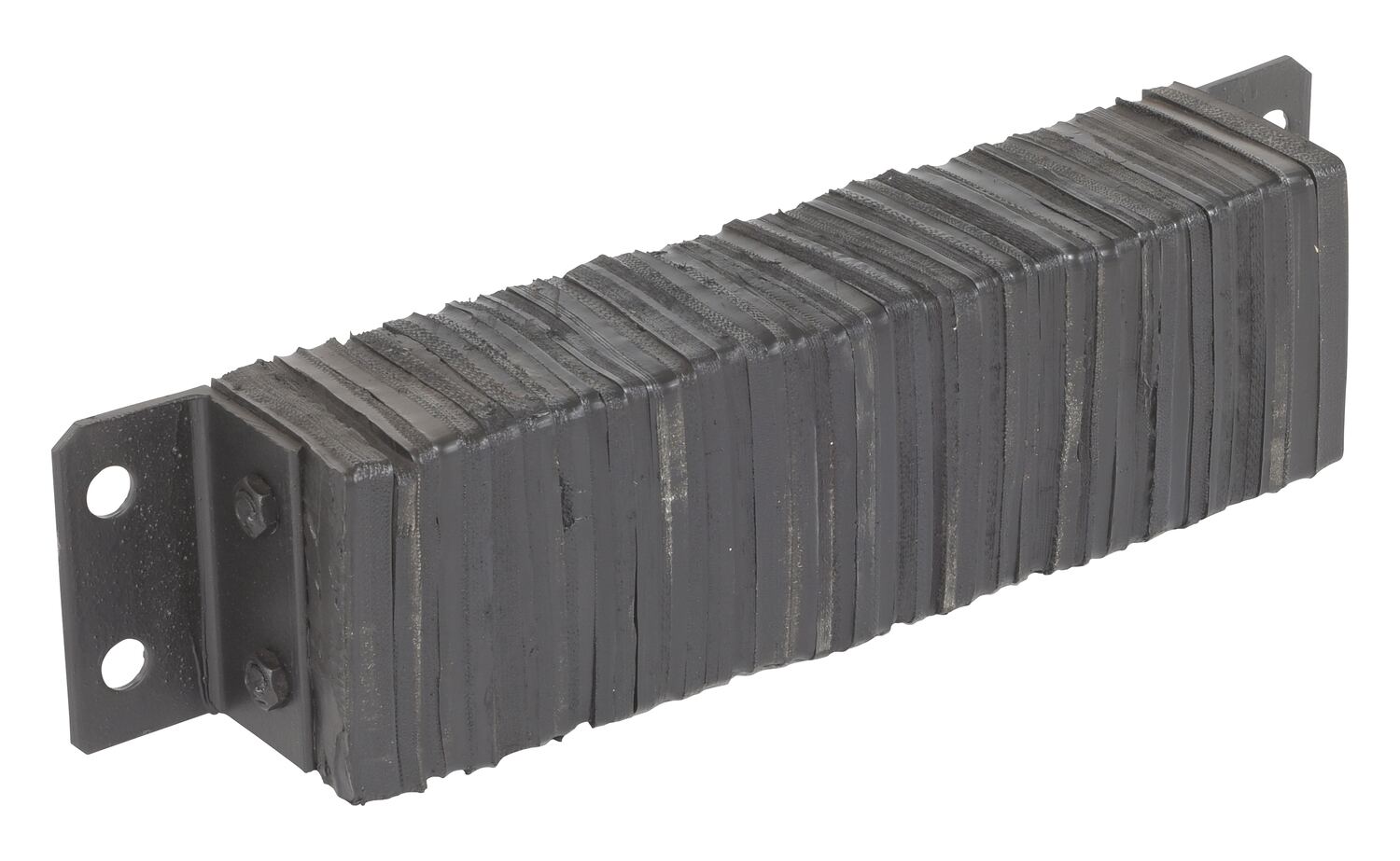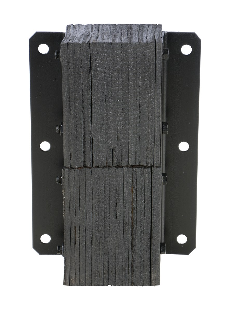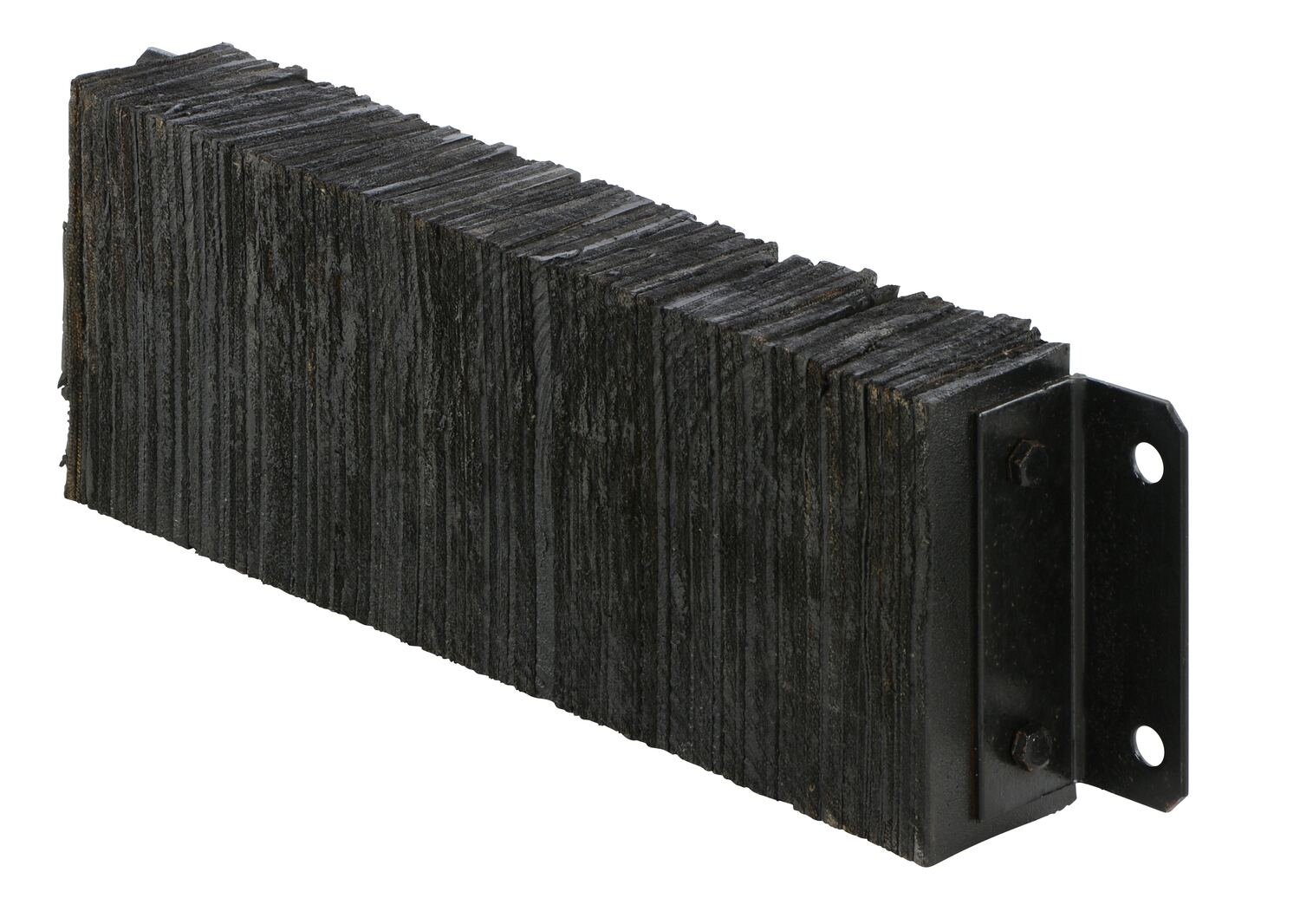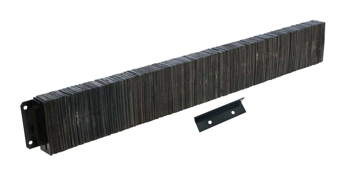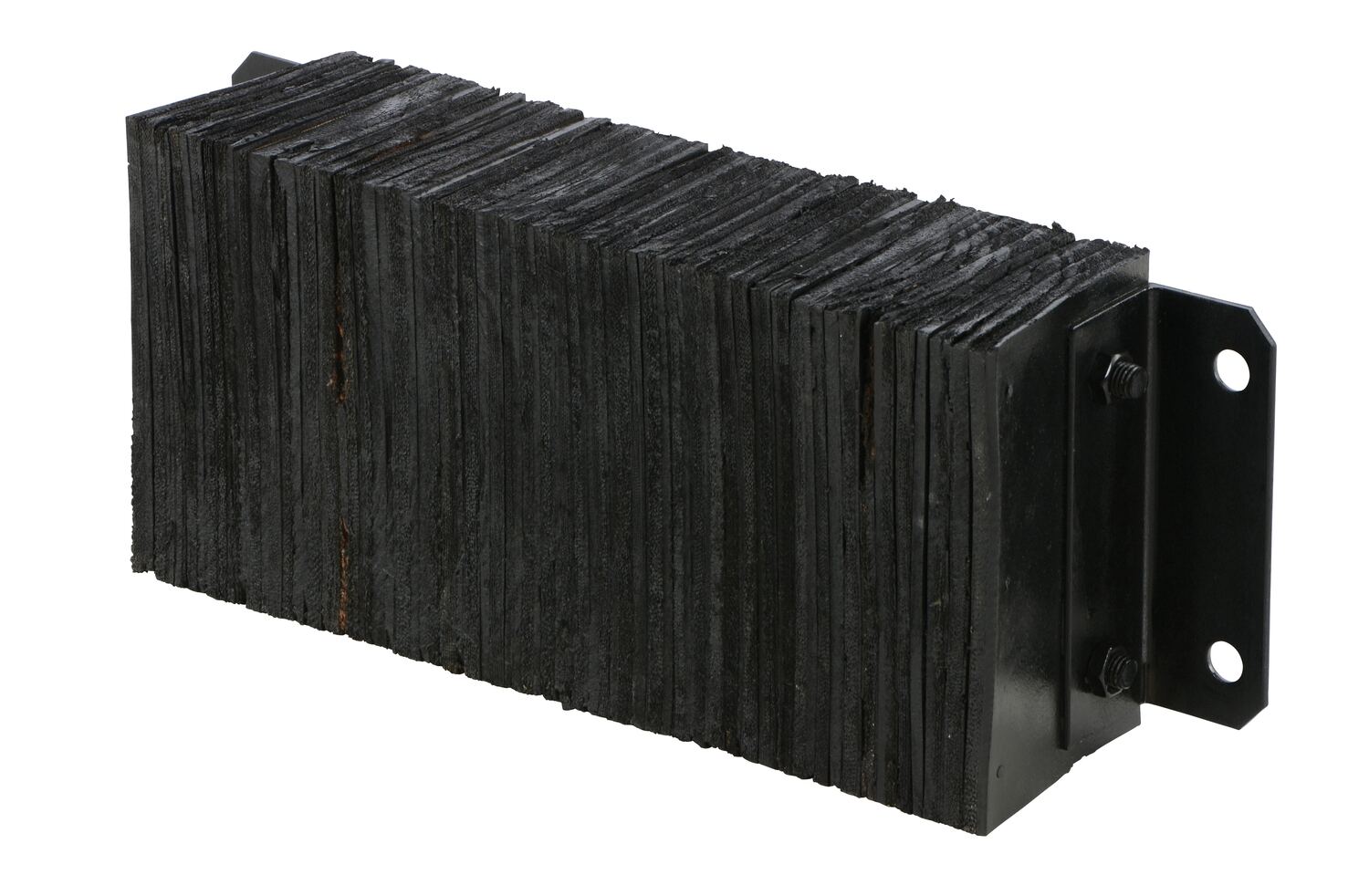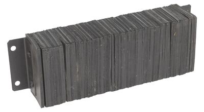 The laminated Dock Bumper provides durable, economical protection for loading docks and trailers. This unit is constructed of fabric reinforced rubber from recycled truck tires. The pads are laminated between painted structural angles and held together with steel tie rods. The width is bolt hole center to bolt hole center. Installation hardware sold separately.