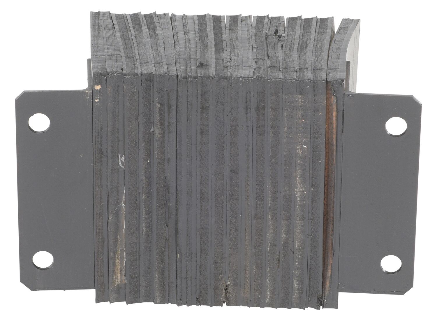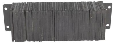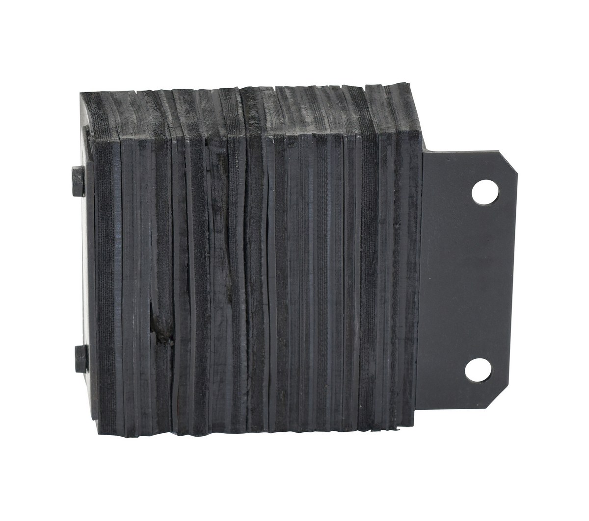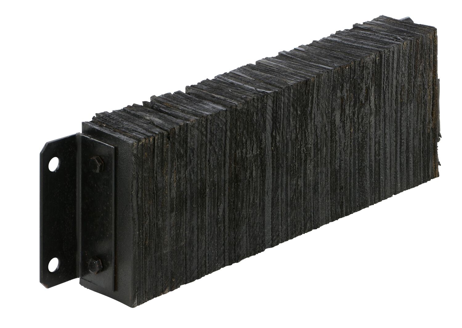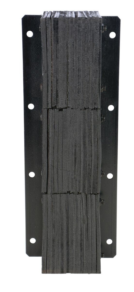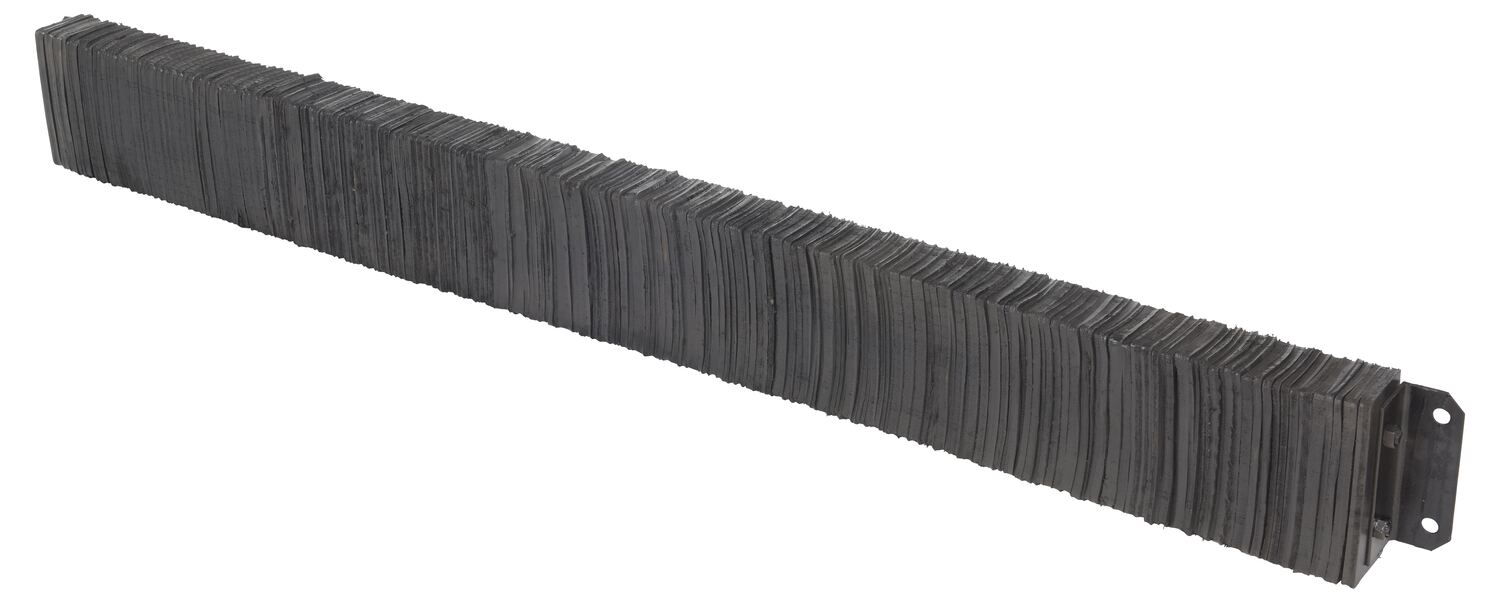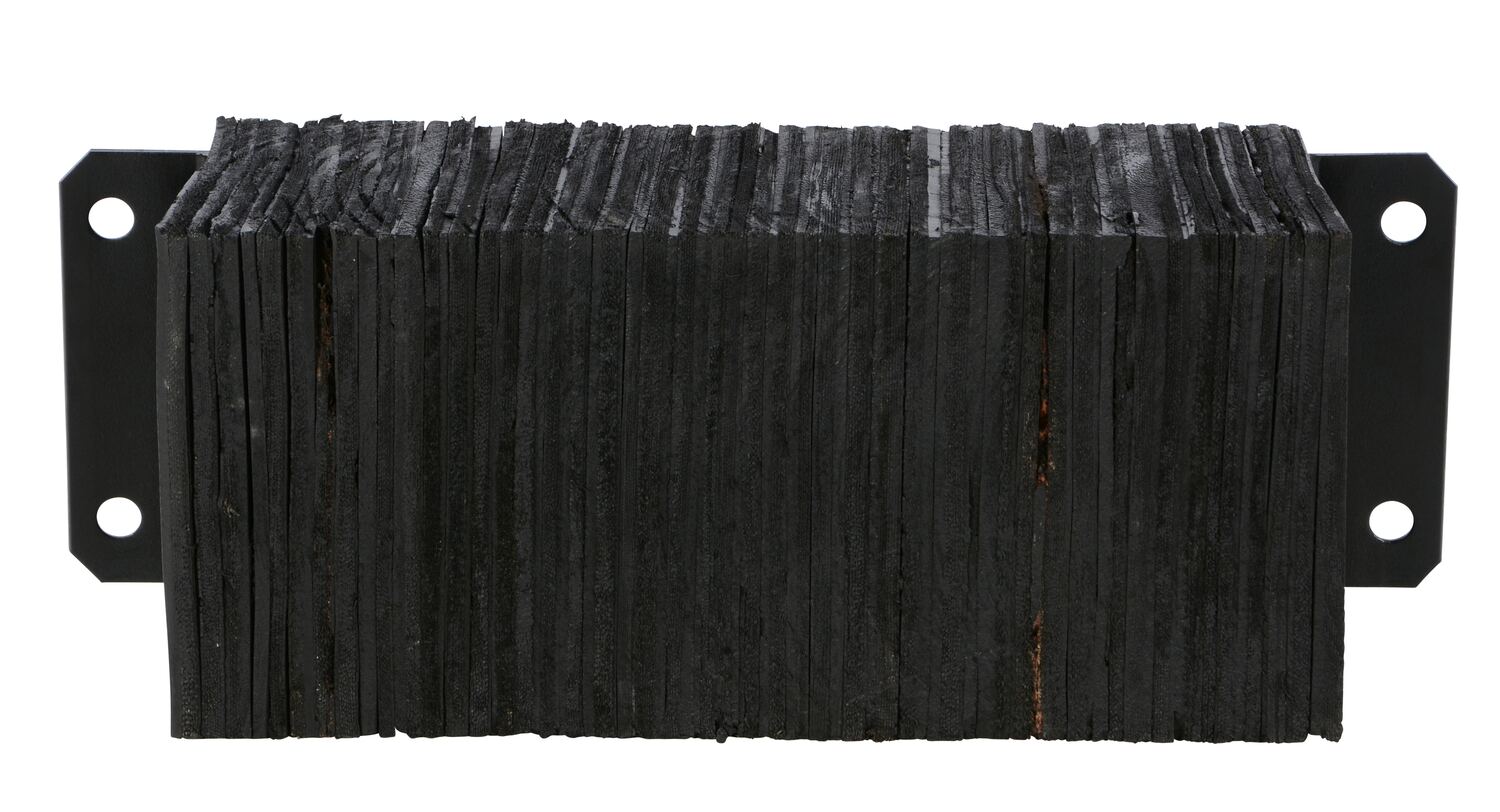 The laminated Dock Bumper provides durable, economical protection for loading docks and trailers. This unit is constructed of fabric reinforced rubber from recycled truck tires. The pads are laminated between painted structural angles and held together with steel tie rods. The width is bolt hole center to bolt hole center. Installation hardware sold separately.