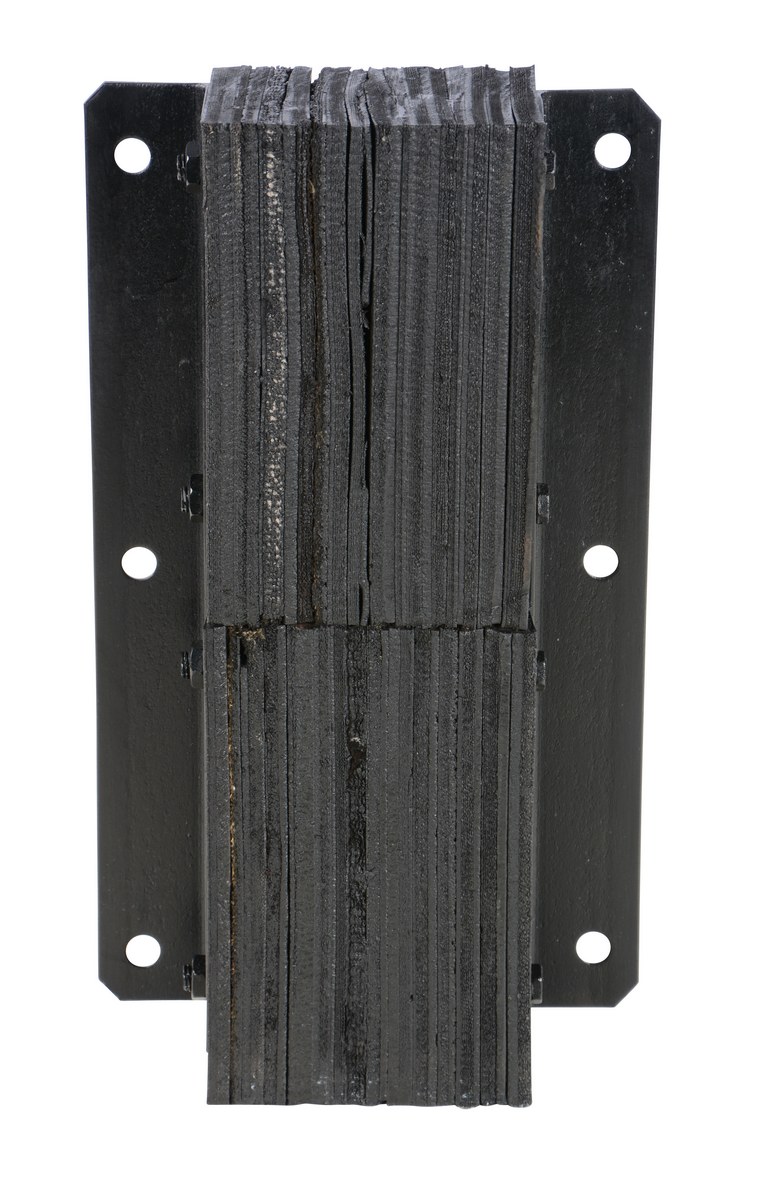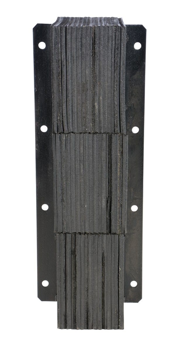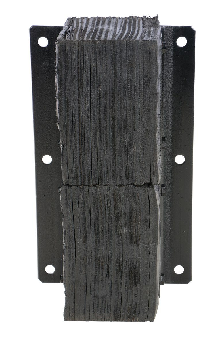 Manufactured with laminated sheets of rubber compressed between steel angles for strength and durability