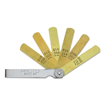 | 577-000BR | 3 5/16 in | 0.0060 in; 0.0080 in; 0.0100 in; 0.0120 in; 0.0140 in; 0.0160 in | 1/2 in | Brass | Inch/Metric | Feeler |