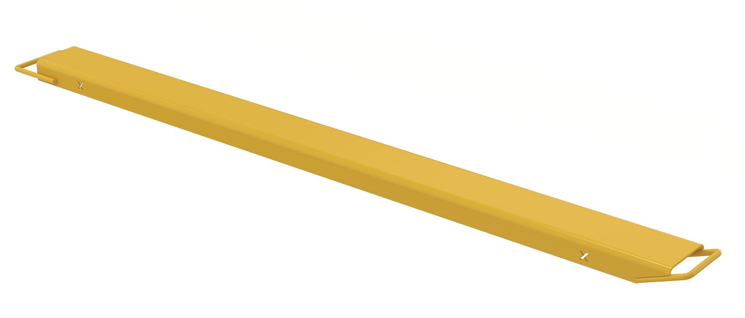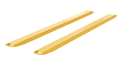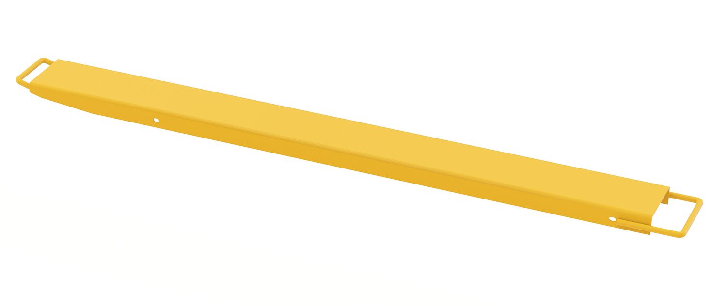 Fork extensions are the perfect accessory for new or existing forks. The high strength material provides extra support needed to lift large heavy objects with a fork lift. These models are almost 40% lighter than standard fork extensions. A powder coat finish is included to diminish scraps and minimize abrasion during use. To be used with class 2 and class 3 forks only. There are two handles included on each fork extension. The larger of the two is welded to the outside of the extension and it designed to go around the heel of the fork. While the smaller of the two handles is welded to the inside of each extension and is located at the front of the unit (opposite end). This handle is designed to assist the user while installing or removing the extension.