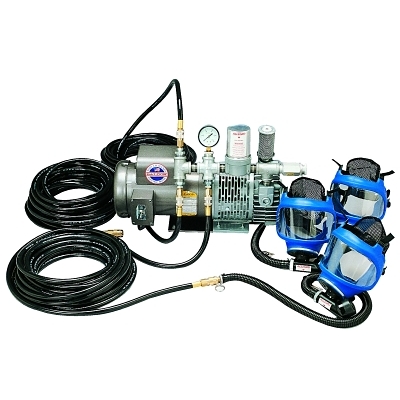 | 037-9200-02 | 50 ft | (2) Full Mask Respirators; 1/4 HP Ambient Air Pump; 3/4 HP Pump; Breathing Air Hose | 0 lb |