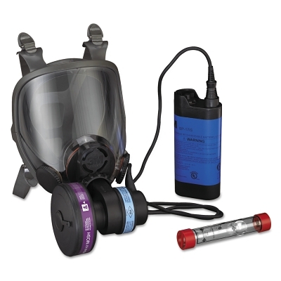 | 142-6800PF | 5 3/8 in | #6800DIN - Medium full-face respirator;#024-00-02R01 - motor blower;#521-01-43R01 - battery charger;#520-01-17R01 - battery pack;#450-01-01R20 - cartridge filter;#520-01-21 - airflow indicator | 14 3/4 in | Medium |
