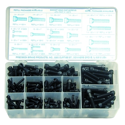 Includes:Plastic Case; (10) 1/4-20 x 1 in; (10) 1/4-20 x 1-1/2 in; (10) 1/4-20 x 1-1/4 in; (10) 1/4-20 x 3/4 in; (10) 1/4-28 x 1 in; (10) 1/4-28 x 1-1/2 in; (10) 1/4-28 x 1-1/4 in; (10) 1/4-28 x 3/4 in; (10) 10-24 x 1 in; (10) 10-24 x 1/2 in; (10) 10-32 x 1 in; (10) 10-32 x 1/2 in; (10) 10-32 x 3/4 in; (10) 6-32 x 1 in; (10) 6-32 x 1/2 in; (10) 8-32 x 1 in; (10) 8-32 x 1/2 in; (10) 8-32 x 3/4 in
