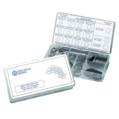 | 605-25998 | Plastic Box; (150) 3/8 ID | Low Carbon Steel | 150 per set | Washer | 0.0050 in; 0.0100 in; 0.0150 in |